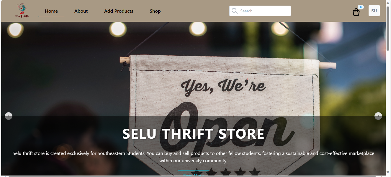 A fully functional e-commerce site developed for SELU Thrift Store to enable users to easily buy and sell products .